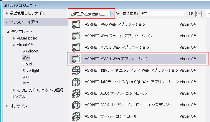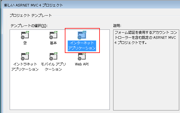 現時点のWebサイトでは、.NET Framework 4.5はサポートされていませんので、.NET Framework 4を選択(画面06)し、今回はテンプレートとして、ASP.NET MVC4 Webアプリケーション(画面06)のインターネットアプリケーション(画面07)を使用します。
