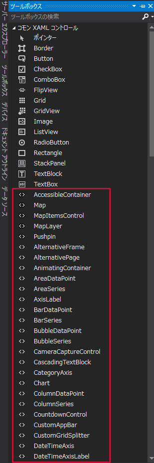 ツールボックスの「コモンXAMLコントロール」内にWinRT XAML Toolkitのコントロールが表示されます(図11)。