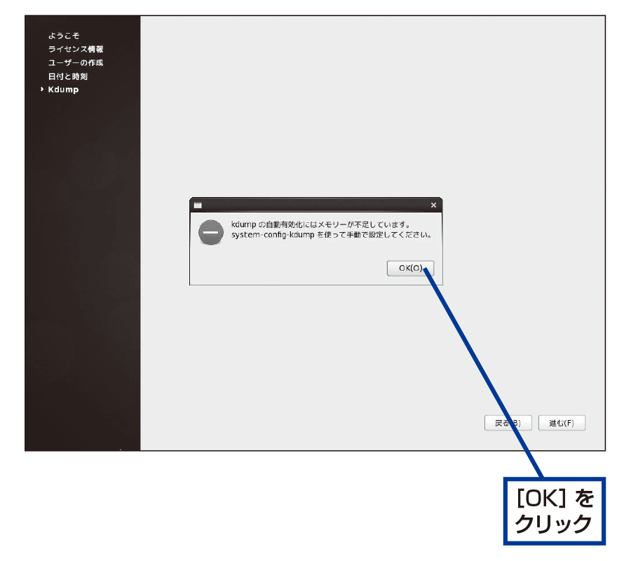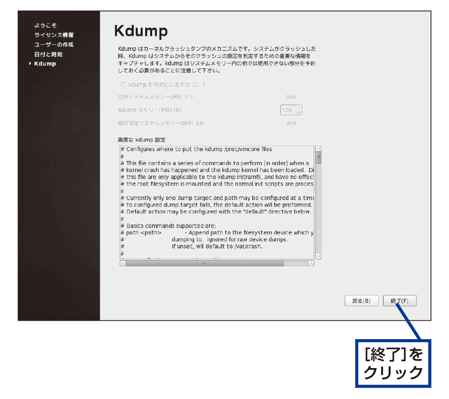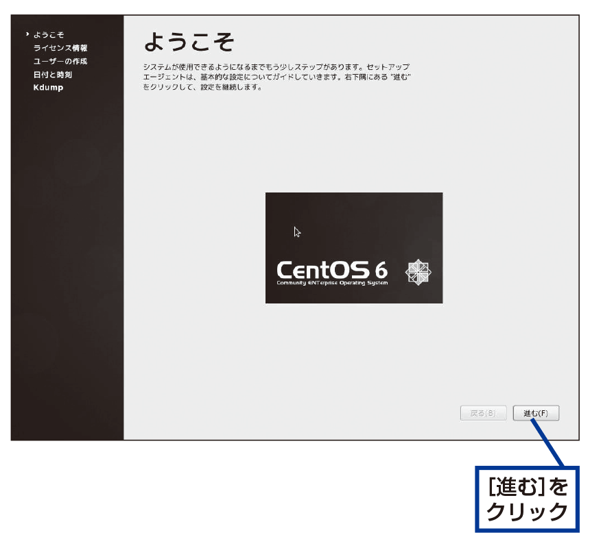 画面を閉じてCentOSのセットアップを終了させる