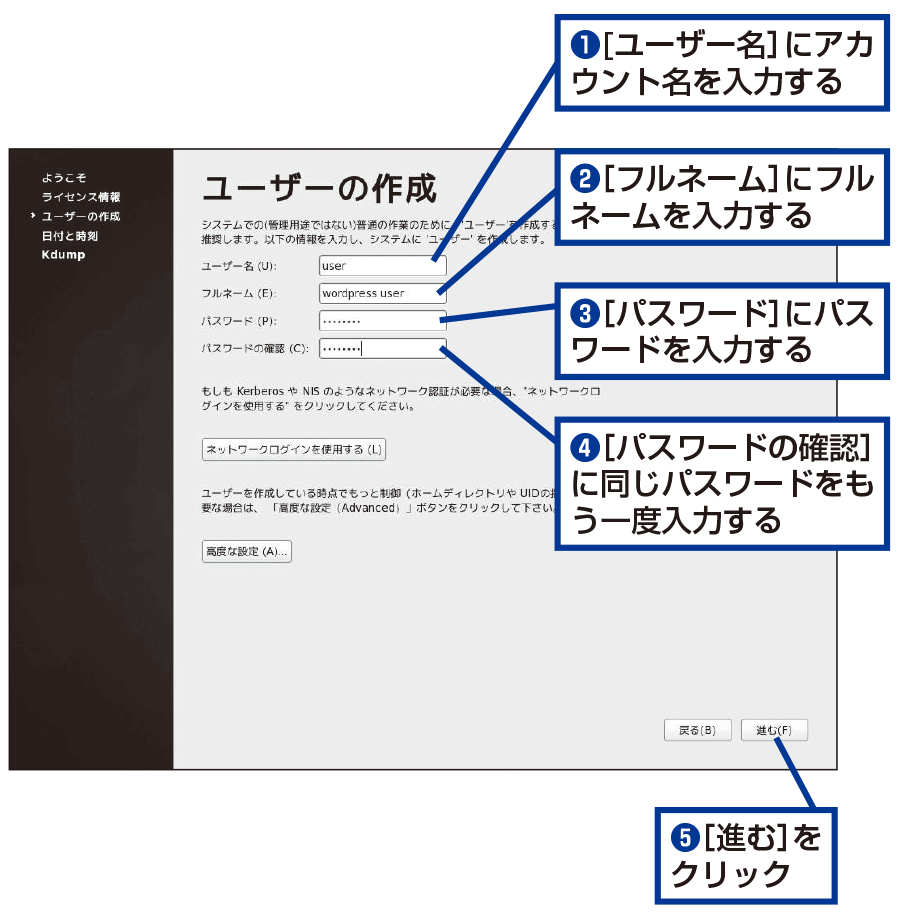 ユーザー名とパスワードを設定する