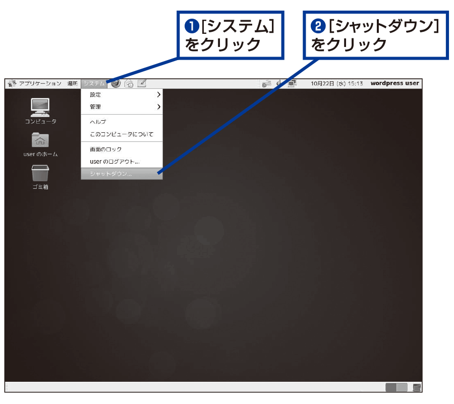 いったんシステムをシャットダウンする